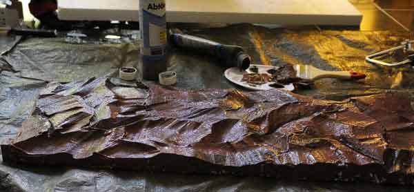 Abdeckfarbe, Sand und Epoxidharz sind die nächsten Zutaten ..