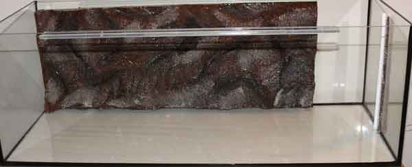Die Rückwand wurde wie schon oft, von uns selbst gebaut.. klein und fein wurde diese nach dem Prinzip SandStorm Tanzania gebaut. Styropor, Abdeckfarbe und Sand kamen zum Einsatz! Struktur schneiden mit einem Heißdrathschneider und danach Farbe/ Sand und Epoxidharz zum versiegeln. Dieses kleine Projekt ging natürlich bedeutend schneller...